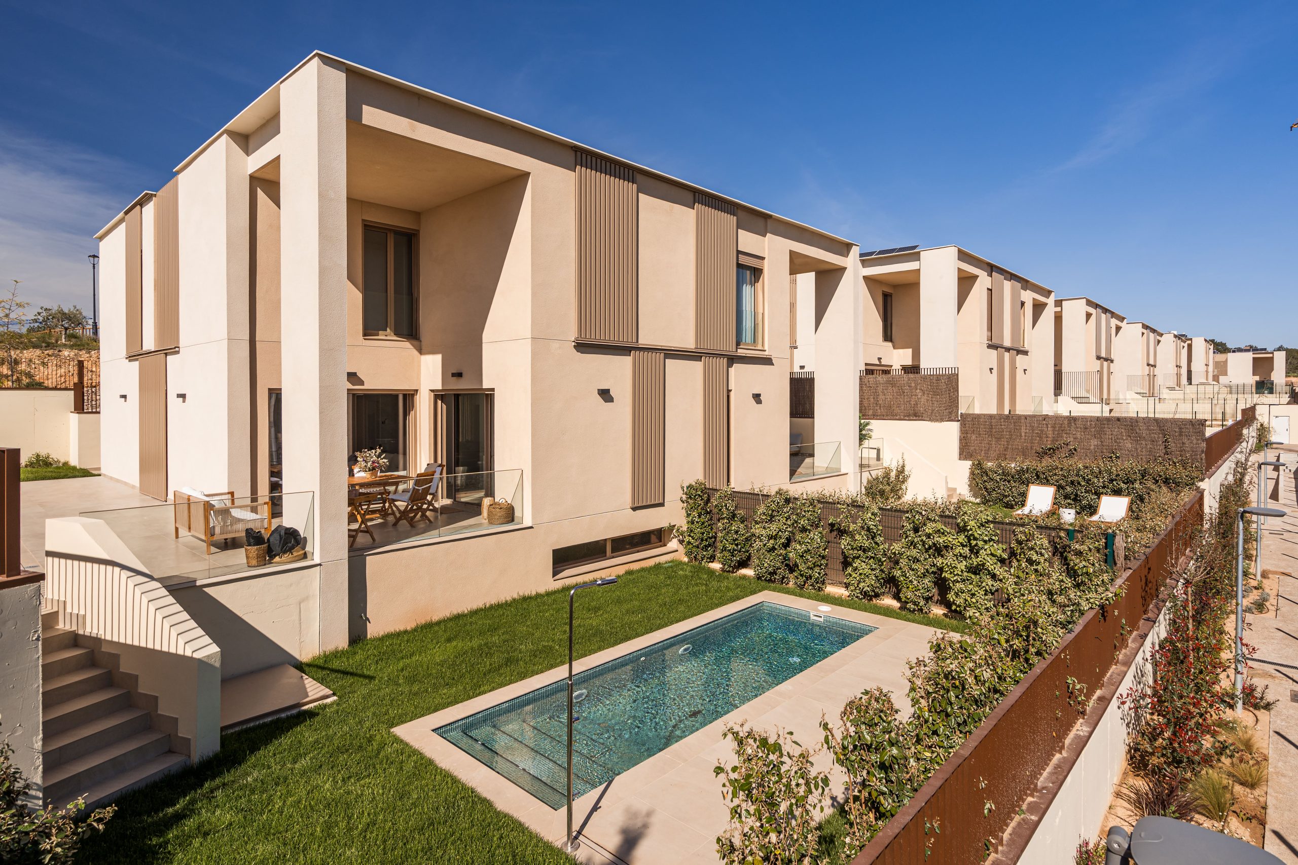 Cumpliendo los plazos comprometidos con los clientes, AEDAS Homes ha comenzado a entregar los 14 pareados de vanguardia de 4 y 5 dormitorios que conforman la fase I de Odina. En total, la compañía desarrolla 36 unidades con jardín y piscina propia, garaje en el sótano, bodega y trastero que han sido diseñados para maximizar la luz natural en el interior y con estándares de sostenibilidad que proporcionan una alta eficiencia energética.