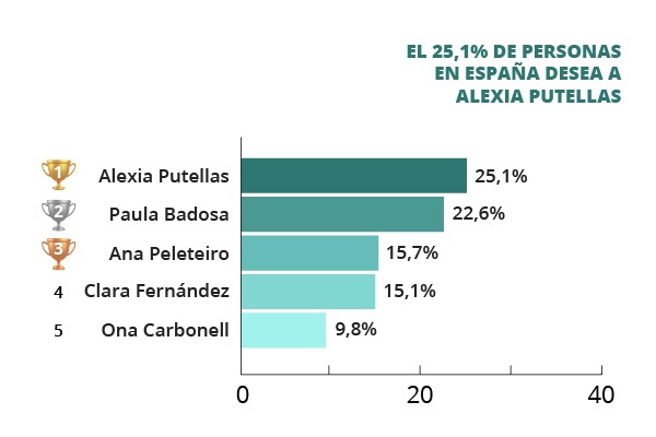 - El estudio radiografía las preferencias en cada provincia española. Gabriel Rufián, Marc Márquez, Alexia Putellas, Ana de Armas y Cristina Pedroche también están entre los más deseados.